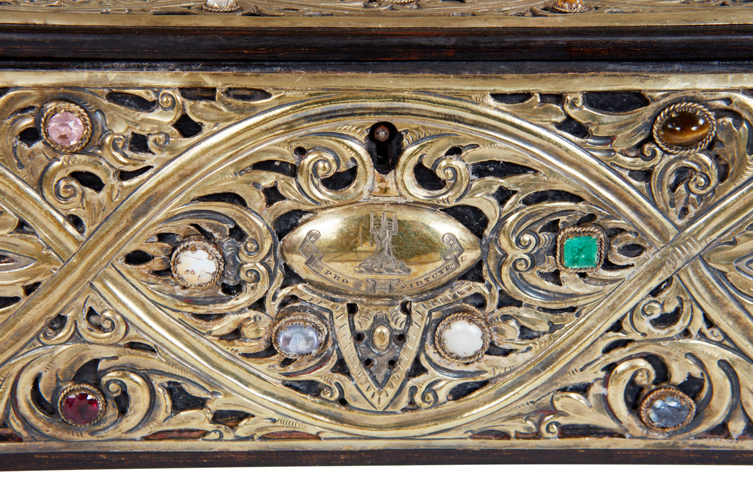 Carved Presentation Box with Silver and Semi-Precious Stones c. 1845