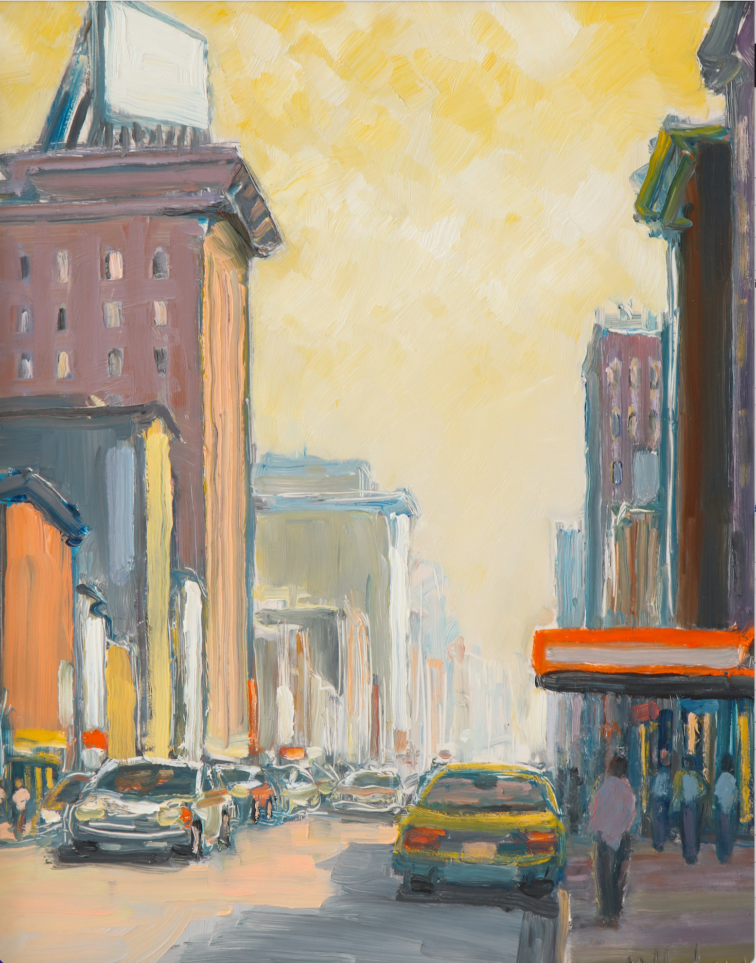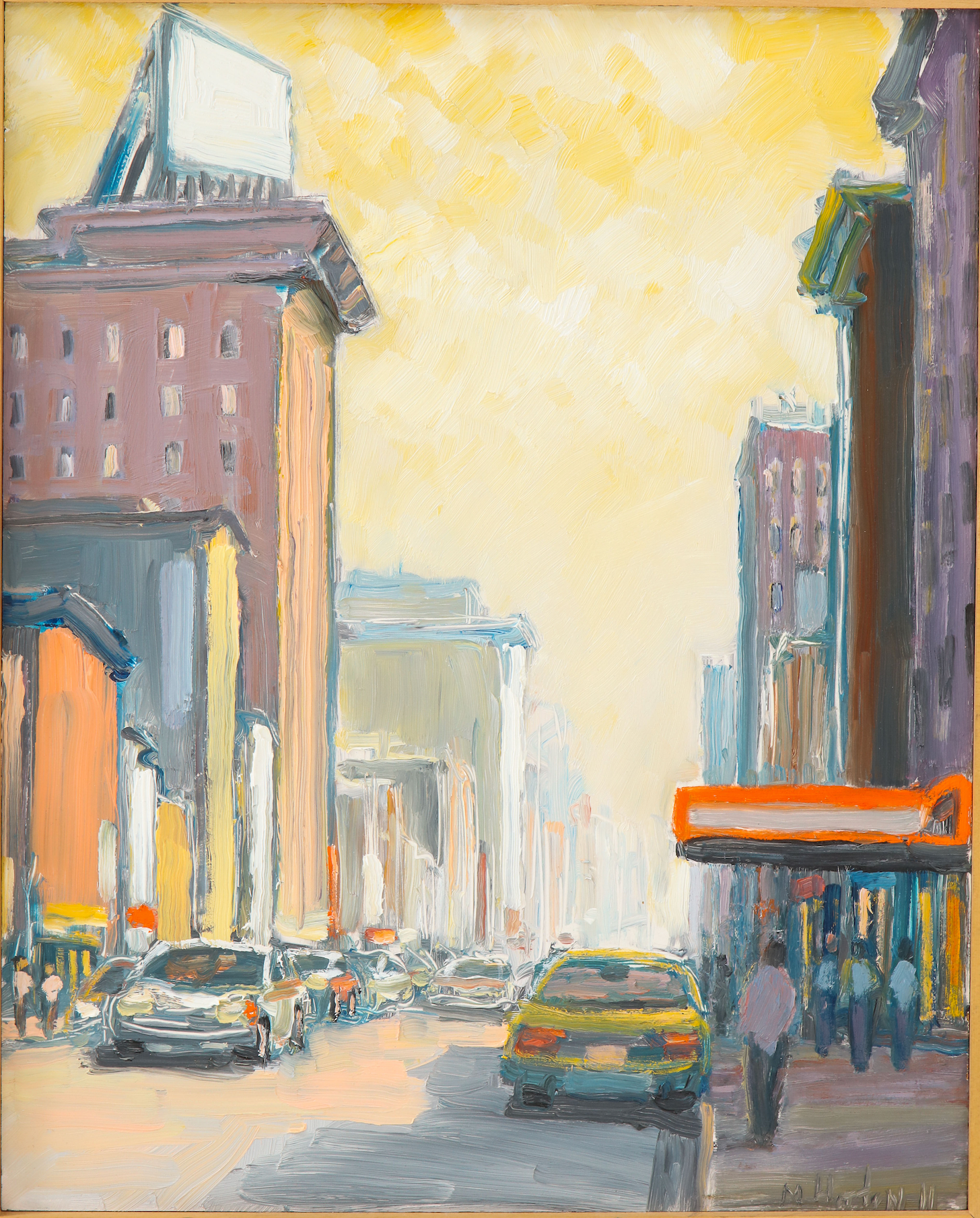 Mark Horton is a contemporary painter who specializes in imaginary cityscapes that echo the 1950's through 1970's. Ht. 20", W. 16"