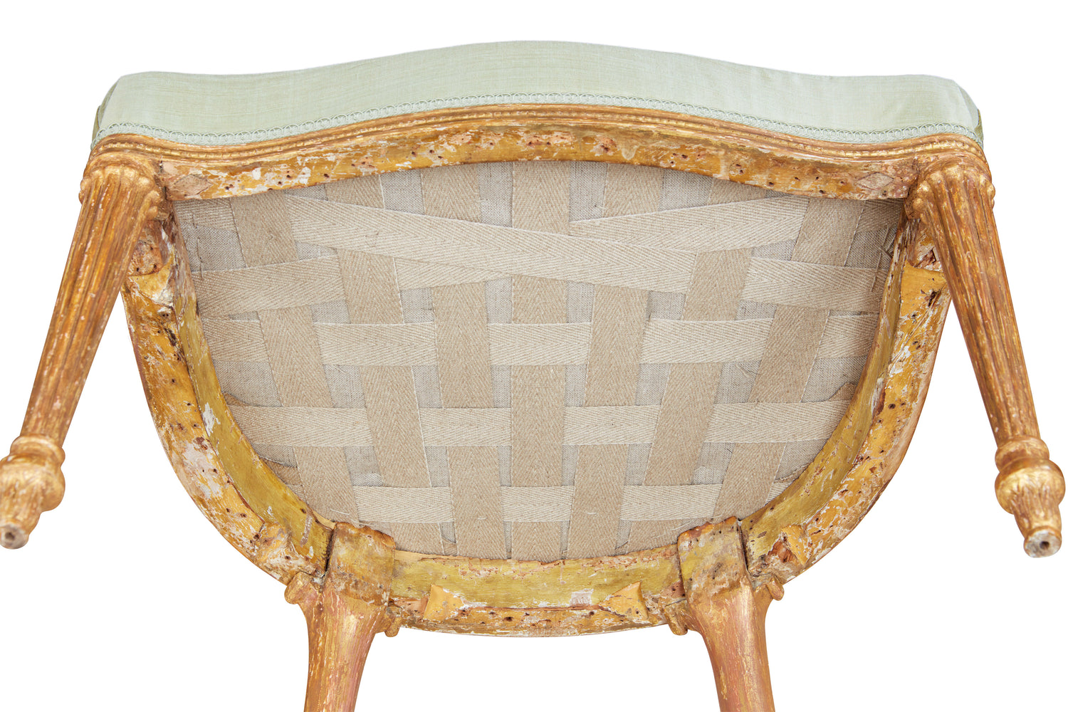 This pair of beautifully-drawn chairs are identical in almost every respect to a suite of seat furniture, six armchairs and two settees, supplied to Sir Richard Colt Hoare at Stourhead c.1780. This furniture has been attributed to Thomas Chippendale the Younger by Lucy Wood (see Furniture History 2011, pp. 89-90, figs. 34-37). The constructional details of this suite include such idiosyncratic features such as cramp cuts in the seat rails and an exposed back strut which are associated with attributions to the Chippendale workshops. These same features are present in the pair of chairs under discussion here. In fact the only notable difference between the Stourhead suite and our chairs is that the Stourhead examples lack the pearl beading on the frames which is a further sign of refinement on our models.