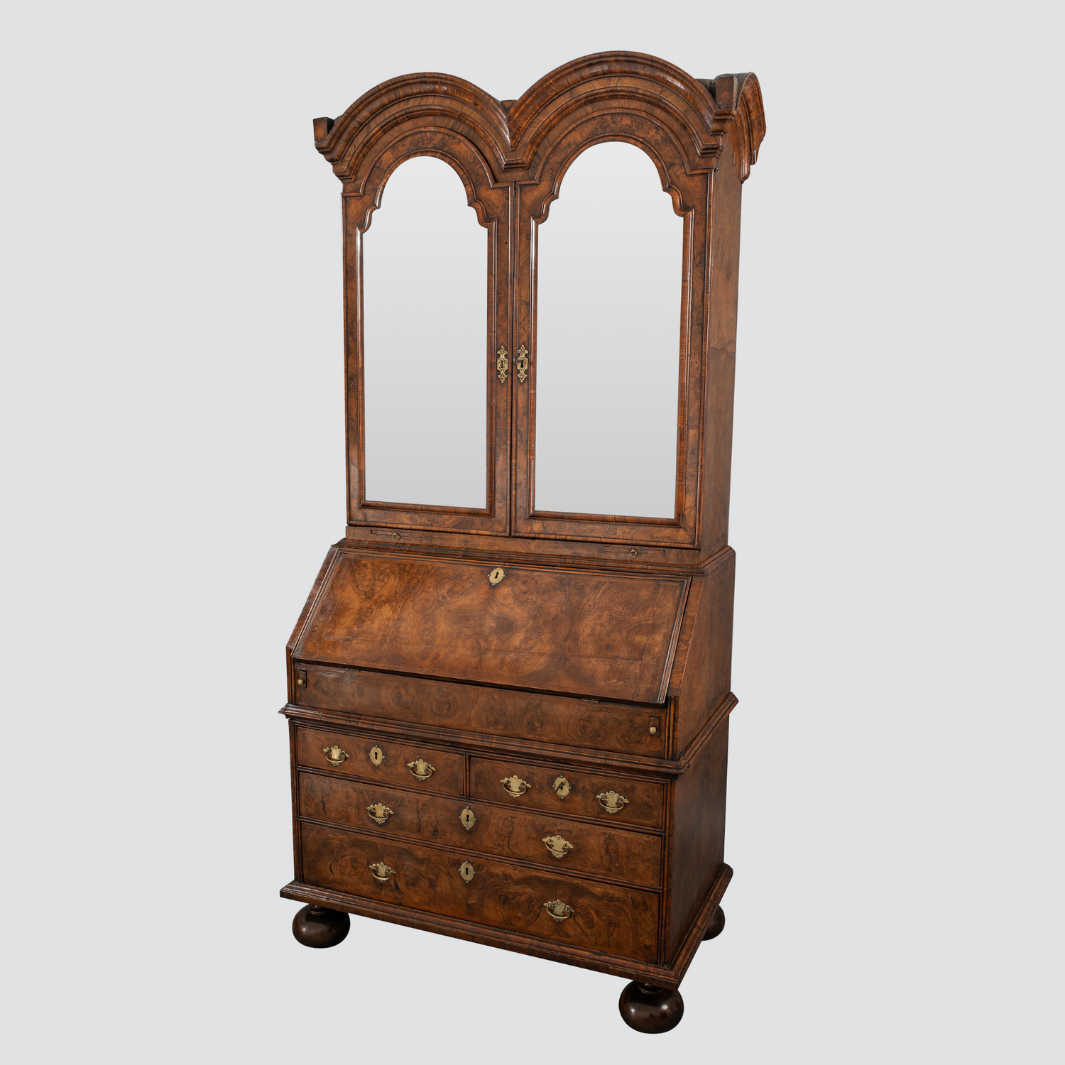 Walnut Double Dome Bureau Bookcase